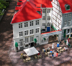 Shelby and I spent our last day in Denmark at Legoland Billund -- the original, founded in 1968. (Subsequent Legolands have since popped up in Windsor, England, Carlsbad, Calfornia, and Günzburg, Germany.) Billund is pretty much in the middle of nowhere -- but the park is right down the street from Lego's corporate headquarters, which explains why it is where it is. |