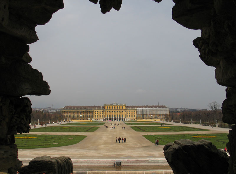 Standing in front of the Gloriette, looking back at the palace, with the city spread out beyond. |