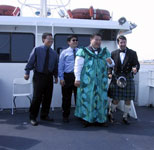 The wedding came the next day; in mid-afternoon we gathered dockside and waited to get on the wedding boat. (They originally planned for a smaller boat; they got this super-jumbo one as a last-minute free substitution from the charter company.) |